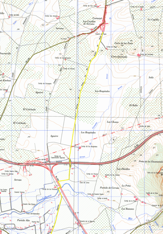Después de 1 km. cruzamos por encima la autovía A 92. Y tras otros 4,5 Km. de suave subida, por el Camino de Cuevas Bajas, llegamos a Cartaojal.