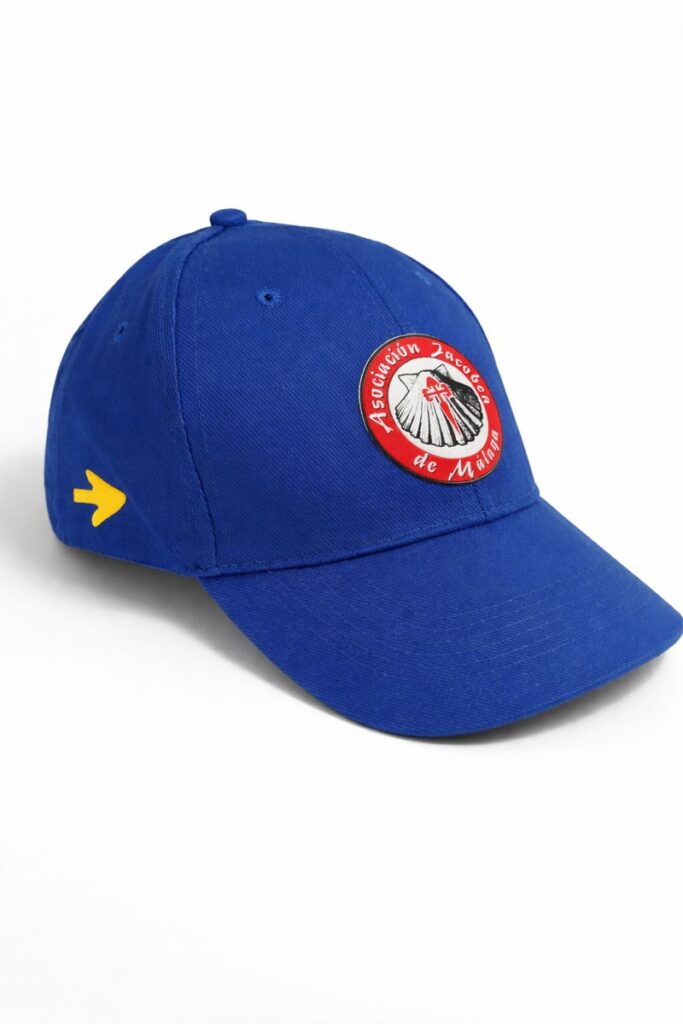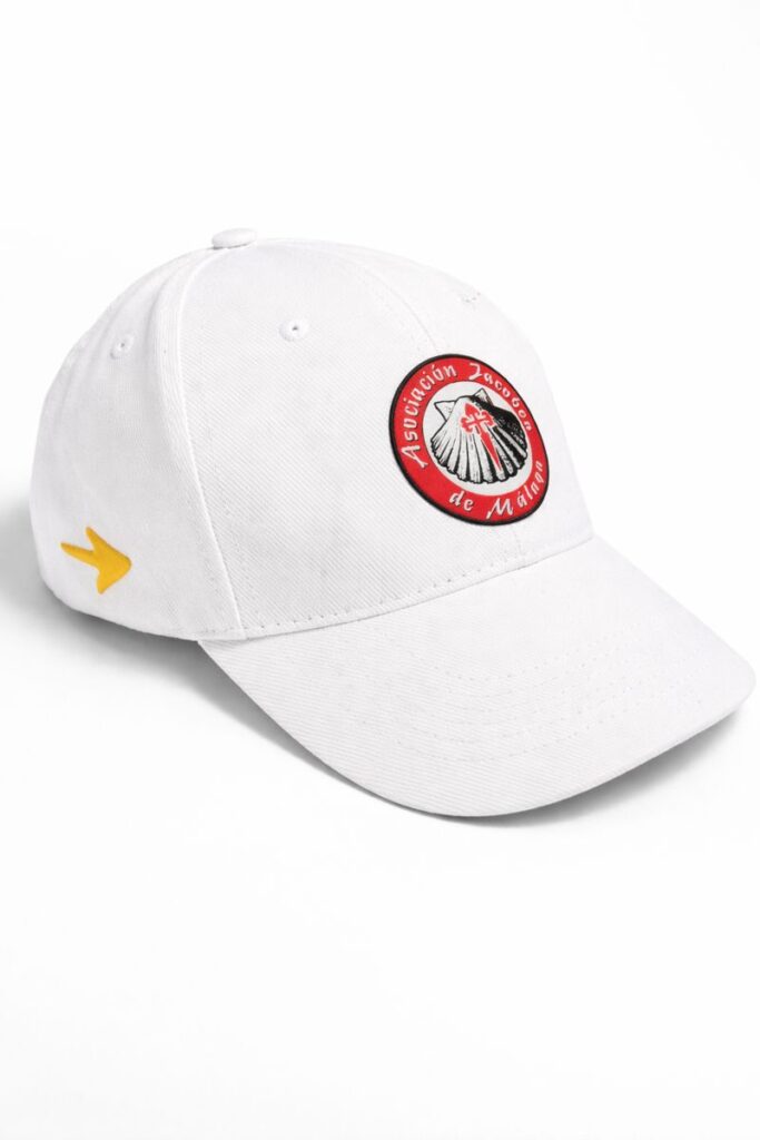 Gorra con tejido 100% algodón presentada en tres colores; blanco, azul y negro. Decorada con el logo de la Asociación Jacobea de Málaga y el distintivo del Camino de Santiago.