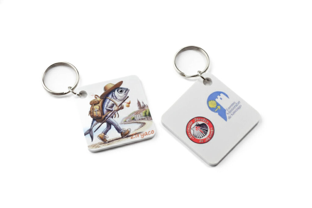 Llavero decorado con la mascota de la Asociación Jacobea de Málaga; Zyriaco.